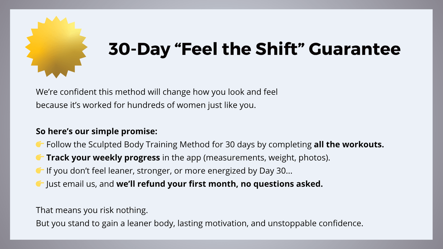 This is your moment. Are you ready to embrace the Sculpted Body Training Method and transform your body & fitness journey?